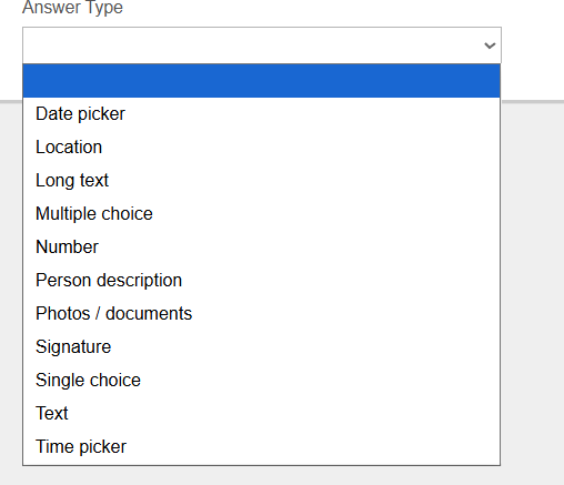 The answer type options are as follows: