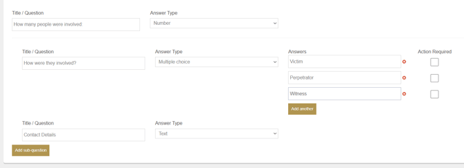 For example, if the above was answered as two people involved, two sets of the sub-questions would be generated for the individual completing the form