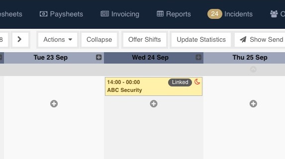 3. Create your shifts (direct or linked) as normal. In the example below, a linked shift has been created.