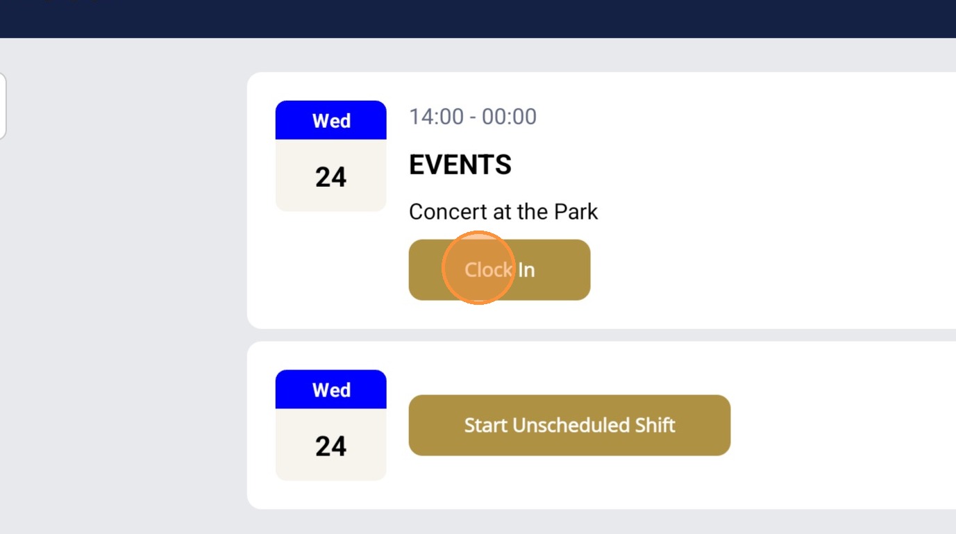 18. Click Clock In to start the shift