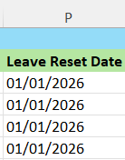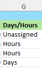 Column G shows Days/ Hours this will display as hours for those on accrued leave and days for those on fixed leave (anyone who is not assigned a leave category will display as unassigned):