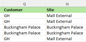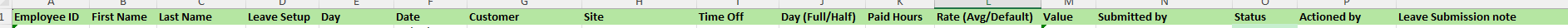 Column's G and H show the Customer and the Site that the leave was submitted under: