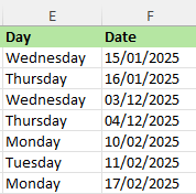 Column's E and F show the Day of the week that the leave was submitted for and the date of the leave:
