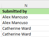 Column N shows who the leave was submitted by (whether that was the staff member themselves or by a manager or admin on their behalf):