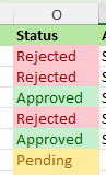 Column O shows the status of the leave request (whether it was approved, rejected or is still pending):