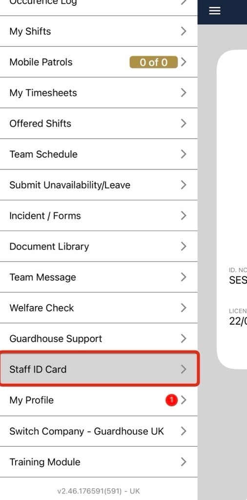 To view the ID cards in the app, navigate to Staff ID Card: