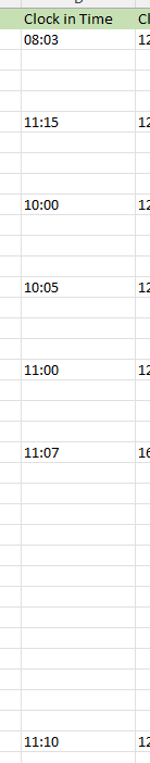 Column D shows the Clock in Time: