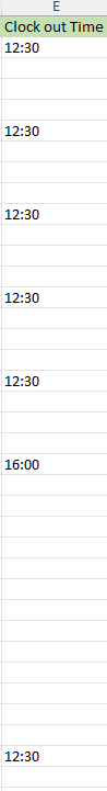 Column E shows the Clock Out Time: