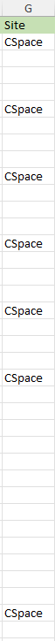 Column G shows the Site: