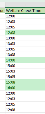 Column I shows the Welfare Check Time (what time the notification was sent the the individuals app):