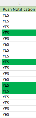Column L shows whether a push notification for the check call was sent to the individuals phone: